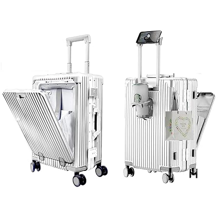 DwanNuts Carry On Luggage with Cup Holder and Usb Port, Aluminum Frame, Front Compartment, TSA Lock, 22x14x9 Airline Approved Hardside Suitcase with Spinner Wheels(Silver, 20-lnch), COL-004