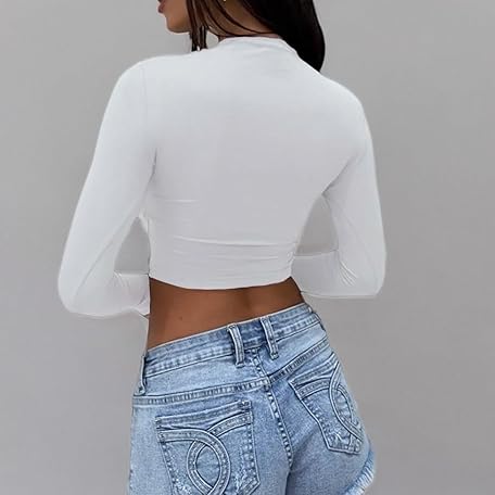 • Dwnval Women's Long Sleeve Crop Tops Y2K Crewneck Cute Sexy Slim fit Cropped T Shirts
