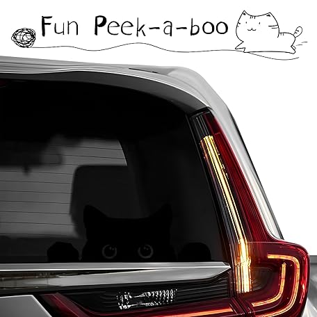DXNQ Peeking Sneaky Cat Sticker, Waterproof Strong Adhesive Decals with Curious Black Cat Graphic, Removable Funny Peeking Black Cats Sticker for Car Window Laptop, Car Accessories (Fretwork)