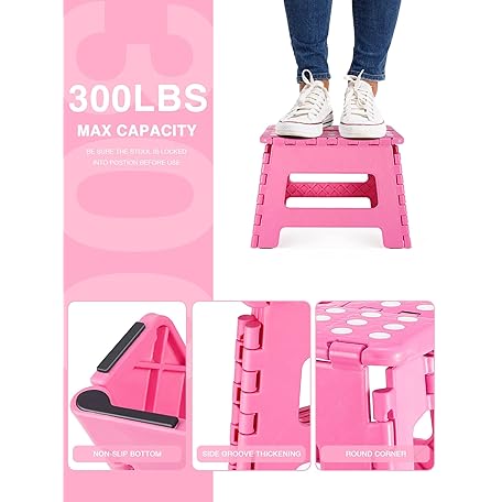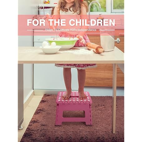Thông tin sản phẩm Dyforce Folding Step Stool 9 Inch, Kids Step Stool, Heavy Duty Step Stools for Adults, Compact Foot Stools, Light-Weight Toddler Step Stools for Kitchen, Bathroom, Holds Up to 300 lbs (Pink)