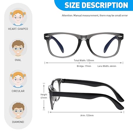 Thông tin sản phẩm DYLB Kids Blue Light Blocking Glasses girls boys 2 pack, computer video gaming glasses for kids girls boys Age 3-10,Anti blue light & Headache (transparent black + transparent)