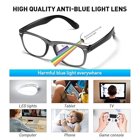 Sản phẩm DYLB Kids Blue Light Blocking Glasses girls boys 2 pack, computer video gaming glasses for kids girls boys Age 3-10,Anti blue light & Headache (transparent black + transparent) đang được bán với giá ưu đãi là $8.7091 tại nước Mỹ.