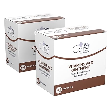 Dynarex Vitamins A & D Ointment, Ointment with Vitamin A and Vitamin D Skin Protectant, for Discomfort and Diaper Rash, White, 2 Boxes of 144 - 5g Packets
