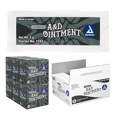 Dynarex Vitamins A&D Ointment Without Lanolin - Vitamin A and D Ointment Protectant for Minor Cuts, Burns, Diaper Rash & Dry Skin - 1 Case - 6 Boxes, 144 Packets/Box - 5g Packets (Packaging May Vary)