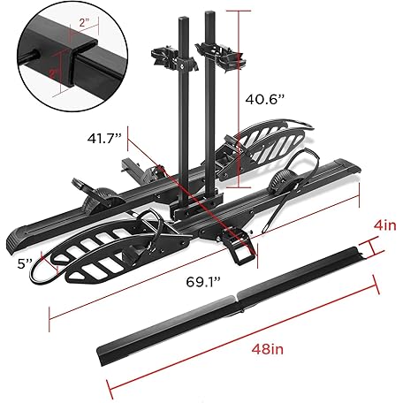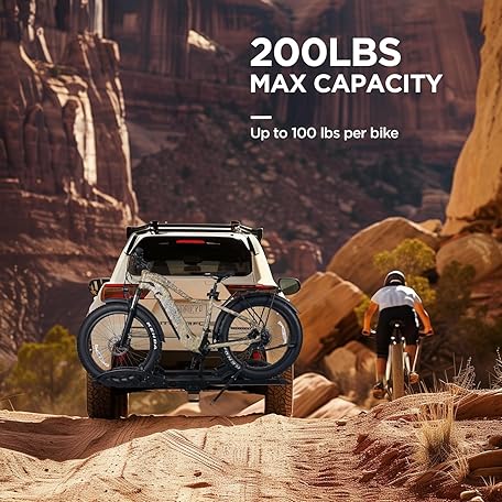 Thông tin sản phẩm E-Bike Rack with Ramp, Hitch 2 Bike Rack, 200 lbs Capacity Electric Bike Carrier, Foldable Platform Mount for Cars, Trucks, SUVs, Minivans, Up to 5-Inch Fat Tire for 2'' Receiver