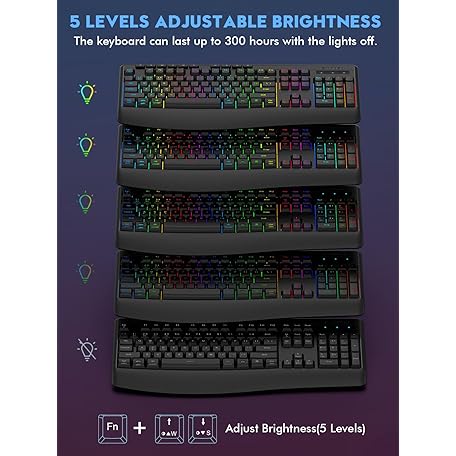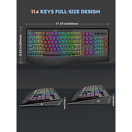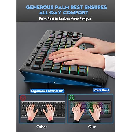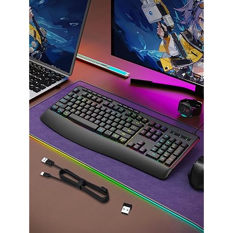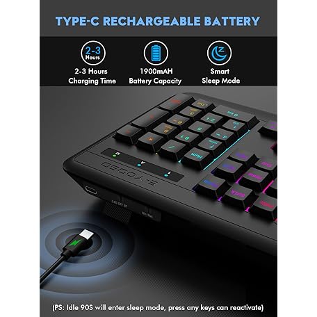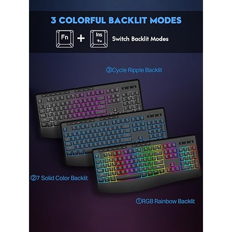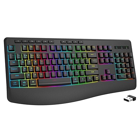 Thông tin sản phẩm E-YOOSO RGB Wireless Keyboard, 3-Mode (2.4G/BT/USB), 9 Effects Backlits, Light Up Letters, Rechargeable Ergonomic Computer Silent Keyboard with Wrist Rest for Windows, Mac, PC, Laptop, Games