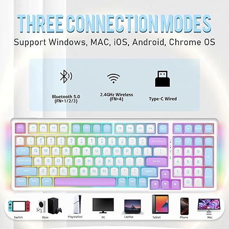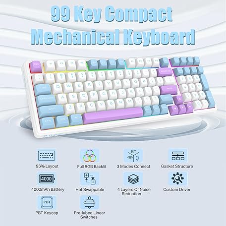 E-YOOSO Z-99 Wireless Mechanical Hot Swappable Custom Keyboard, 96% RGB Backlit Tri-Mode BT5.0/2.4GHz/USB-C, Pre-lubed Linear Switches, Gasket Structure, Gaming Keyboard, Software Support