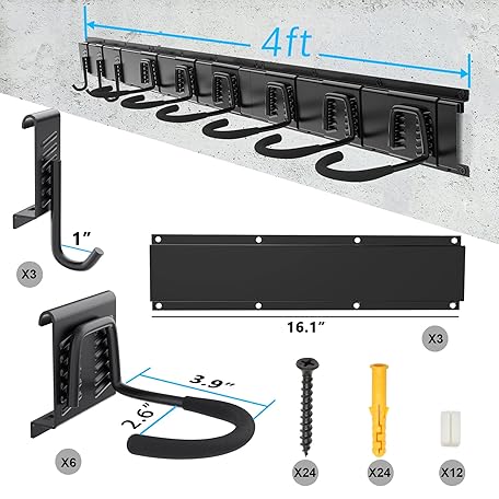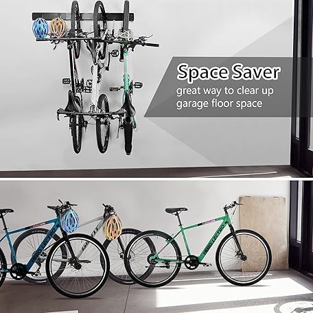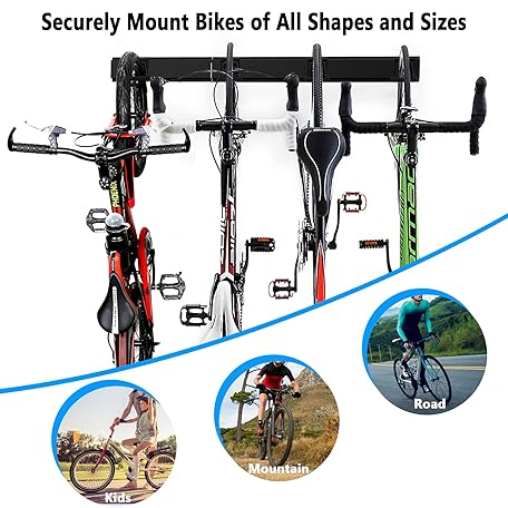 Eapele Bike Rack Garage, 4ft Extra Length for 6 Bicycles Storage and 3 Helmets, Space Saving Vertical Wall Mount, Heavy-Sturdy Steel Made, Holds up to 300 lbs