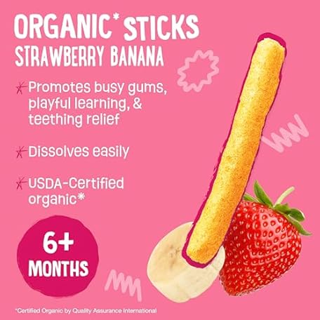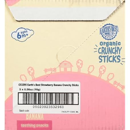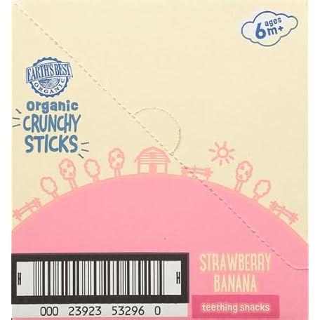 Thông tin sản phẩm Earth's Best Organic Baby Food, Dissolvable Teething Snack for Babies 6 Months and Older, Strawberry Banana Crunchy Sticks, .56 oz Pack (Pack of 5)