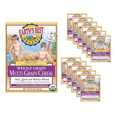 Thông tin sản phẩm Earth's Best Organic Baby Food, Organic Whole Grain Multi-Grain Baby Cereal, Non-GMO, Easily Digestible and Iron Fortified Baby Food, 8 oz Box (Pack of 12)