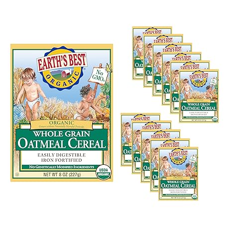 Thông tin sản phẩm Earth's Best Organic Baby Food, Organic Whole Grain Oatmeal Baby Cereal, Non-GMO, Easily Digestible and Iron Fortified Baby Food, 8 oz Box (Pack of 12)