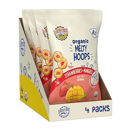 Earth's Best Organic Melty Hoops, Bite-Sized Snacks for Babies 8 Months and Up, Strawberry and Mango, 0.70 Ounce Bags (Pack of 4)