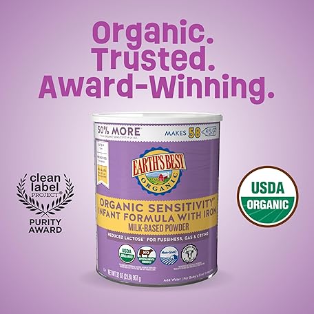 Thông tin sản phẩm Earth's Best Organic Sensitivity Infant Formula for Babies 0-12 Months, Reduced Lactose Powder Formula with Iron, Omega-3 DHA, and Omega-6 ARA, 32 Ounce Value Container