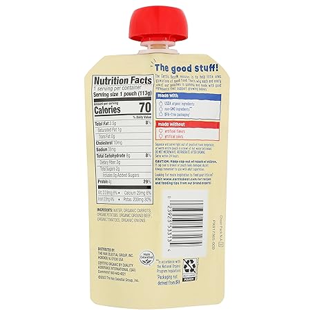 Earths Best Organic Vegetable Beef Medley Baby Food Puree, 4 Oz