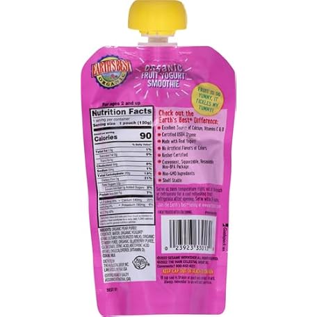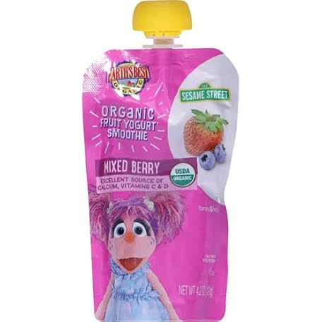 Earth's Best Organic Yogurt Smoothie Pouches, 24+ Months, Fruit Yogurt Smoothie for Toddlers 24 Months and Up, Mixed Berry, 4.2 Ounce Resealable Pouch