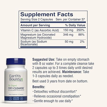 Sản phẩm Earth's Bounty - Oxy-Cleanse Colon Conditioner - Gentle Colon Cleanse for Digestive Wellness - Constipation Relief - Natural Colon Detox - 75 Capsules đang được bán với giá ưu đãi là $25.2771 tại nước Mỹ.