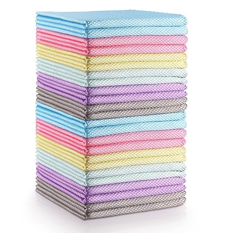 Easy Clean Fish Scale Nanoscale Dish Cloths,Streak Free Miracle Microfiber Cleaning Cloths for Kitchen,Counter,Washing Dish,Window,Mirror,Glass Lint Free Polishing Rag,All-Purpose,Reusable,Pack of 24