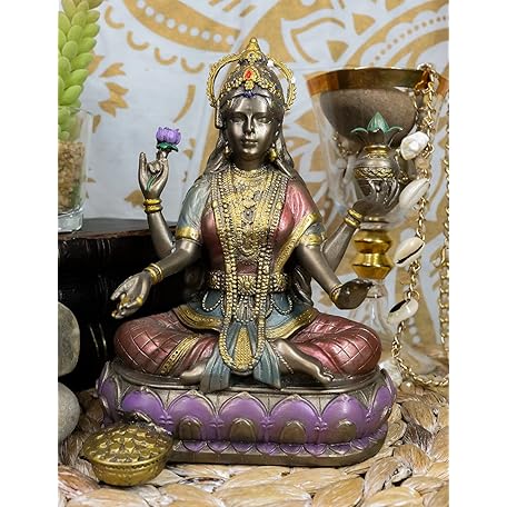 Sản phẩm Ebros Hindu Goddess of Wealth and Prosperity Lakshmi Sitting On Lotus Throne Statue Hindu Decor Figurine đang được bán với giá ưu đãi là $41.4091 tại nước Mỹ.
