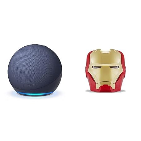Echo Bundle: Like-New Amazon Echo Dot (newest model) | Deep Sea Blue and Limited Edition Marvel Iron Man Stand