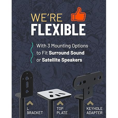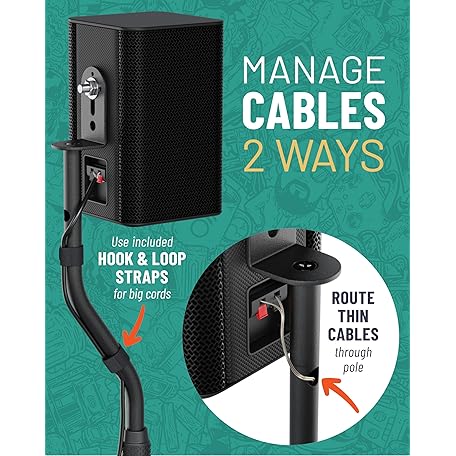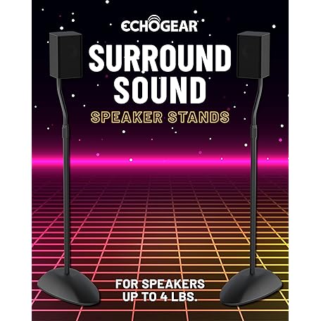 Thông tin sản phẩm ECHOGEAR Universal Speaker Stands - Height Adjustable with Universal Compatibility - Works with Vizio, Klipsch, Bose & More - Includes Built-in Cable Management - Great for Rear Surround Sound - Pair