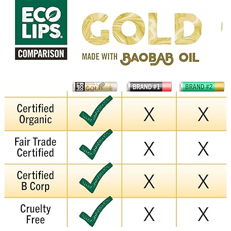 Sản phẩm Eco Lips GOLD Organic Lip Balm with Baobab Oil - Soothe and Moisturize Dry, Cracked and Chapped Lips - 100% Plastic-Free Plant Pod Packaging (6 Tubes) đang được bán với giá ưu đãi là $25.0591 tại nước Mỹ.