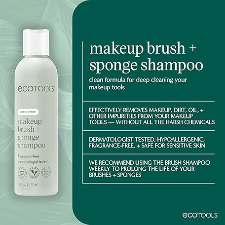 Thông tin sản phẩm EcoTools Makeup Brush Cleanser + Silicone Cleansing Pad Bundle, Deep Cleaning Shampoo for Makeup Sponges & Brushes, Brush Cleaner Pad, Vegan & Cruelty-Free, Gentle Formula
