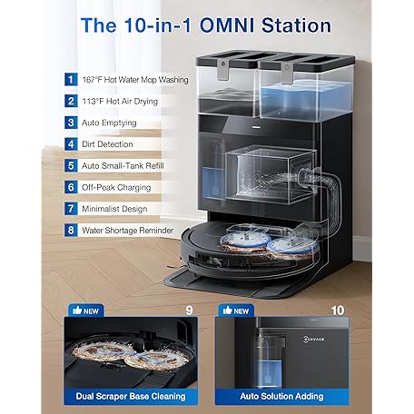 Thông tin sản phẩm ECOVACS DEEBOT T50 PRO Omni Robot Vacuum and Mop, 3.19” Ultra-Slim, 15,000Pa Suction, ZeroTangle 2.0, TruEdge 2.0, AIVI 3D Obstacle Avoidance, Auto Mop Wash & Dry, Self-Emptying, Ideal for Pet Hair