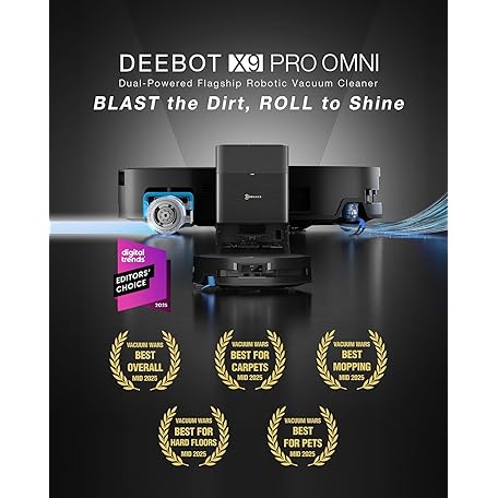 ECOVACS DEEBOT X9 PRO Omni Robot Vacuum and Mop,16,600Pa Blast Suction, OZMO Roller Instant Self-Washing Mopping, ZeroTangle 3.0, Triple Lift System, AI Smart Navigation, Hands-Free Omni Station