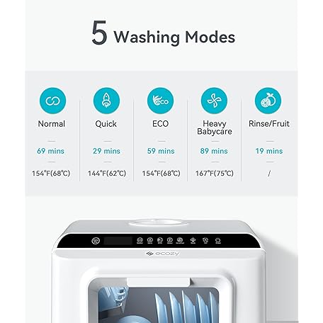 Thông tin sản phẩm ecozy Portable Dishwasher Countertop, Mini Dishwasher with a Built-in 5L Water Tank, No Hookup Needed, 6 Washing Programs, Extra Air Drying Function for Apartments, Camping and RV