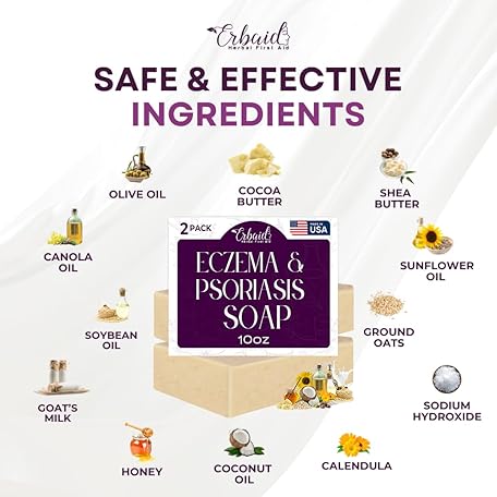 Eczema Soap Bar for Face and Body – All Natural Dermatitis, Psoriasis Treatment for Dry Itchy Sensitive Skin Relief – Gentle Detoxifying, Healing, Anti-Itch, Oatmeal Goat Milk Wash for Kids, & Adults