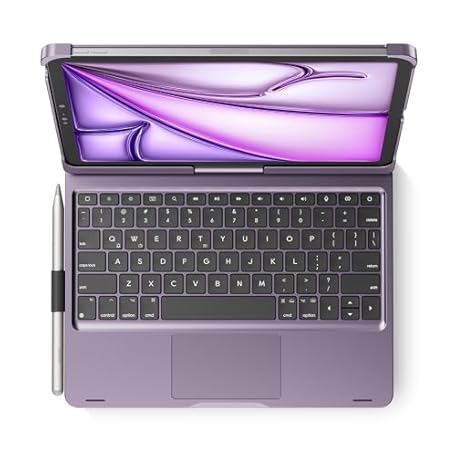edaiser Swivel Keyboard Case for 2025 iPad (11th-10th)& iPad Air 11-inch (M2-M3)& iPad Air 5/4th Gen & iPad Pro 11 inch (4th-1st); Rotatable Cover with Pencil Holder Trackpad Backlit, Metallic Purple