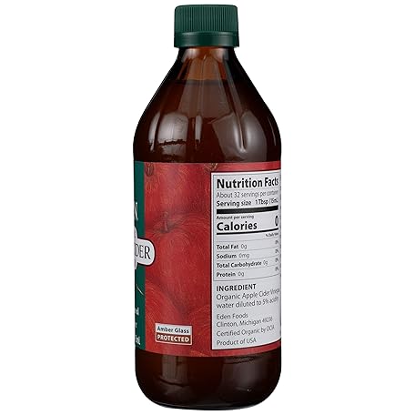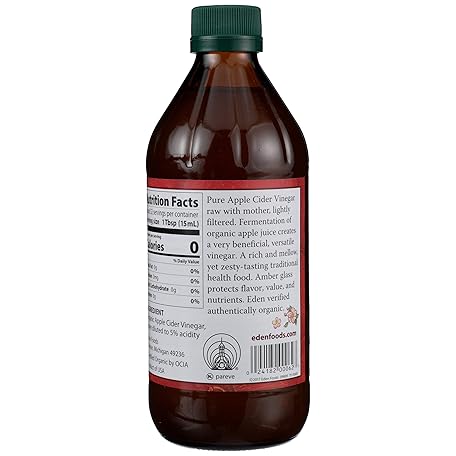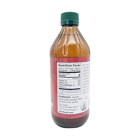 Eden Organic Apple Cider Vinegar, Raw, Unpasteurized with Mother, 16oz Glass