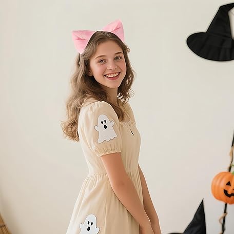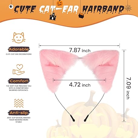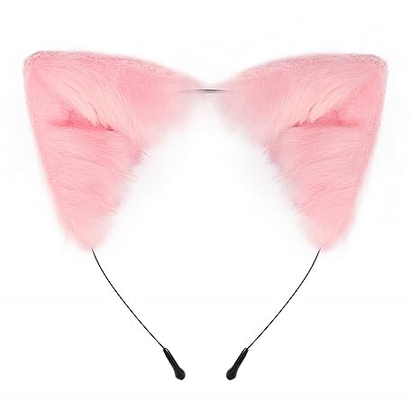 • Edoneery Halloween Cat Fox Wolf Faux Fur Ears Headband, Handmade Hair Accessory for Adult Costume Cosplay & Fancy Dress Parties(Pink)