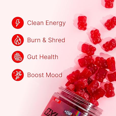 EHP Labs OxyShred Gummies - Pre Workout Gummies & Energy Chews with 100mg Caffeine, L-Carnitine for Thermo & Metabolic Support, All Natural Energy Boost - Strawberry Flavor – 60 Servings