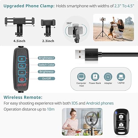Thông tin sản phẩm Eicaus 12" Ring Light with Tripod Stand and Phone Holder,Selfie LED Lighting with 62" Phone and Stand,Circle Ringlight for Photography,TIK Tok and YouTube,Compatible with iPhone, Android and Cameras