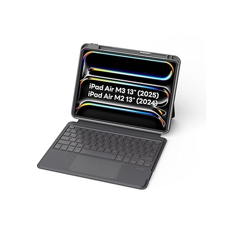 EIP Bluetooth Keyboard Case for iPad Air 13 inch (M3 2025/M2 2024), 13" Magnetic Detachable Case with Trackpad, 7-Color Backlit Keys, Stylus Shortcut Support, Slim Protective Cover