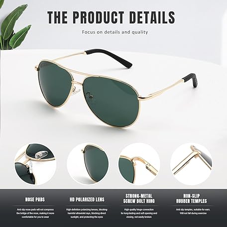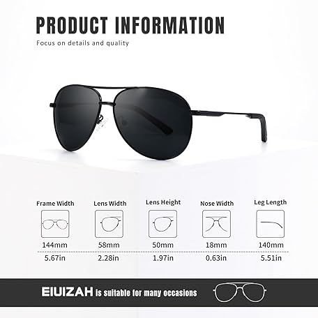Sản phẩm Eiuizah Polarized Aviator Sunglasses for Men Women- Classic Sun Glasses for Driving Fishing with UV Protection đang được bán với giá ưu đãi là $13.7231 tại nước Mỹ.