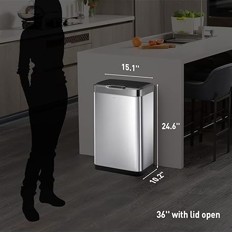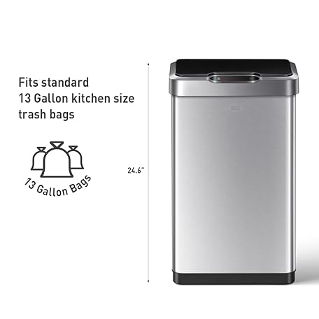 Sản phẩm EKO Mirage-T 50 Liter / 13.2 Gallon Touchless Rectangular Motion Sensor Trash Can, Brushed Stainless Steel Finish đang được bán với giá ưu đãi là $101.9041 tại nước Mỹ.