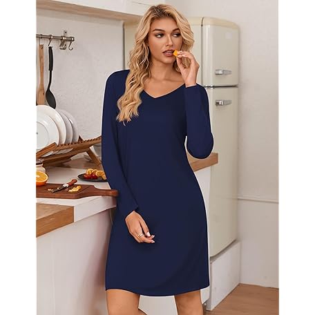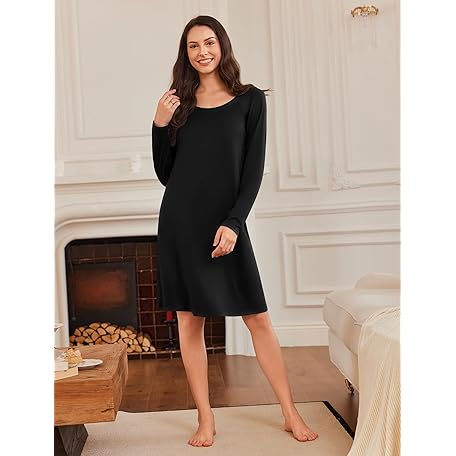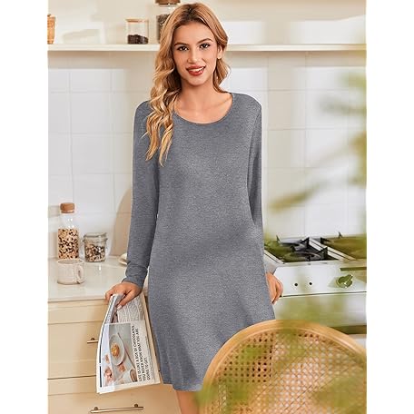 • Ekouaer 3 Pack Women's Nightgowns Long Sleeve Sleep Shirts Comfy Soft Nightshirt Women Pajama Sleep Dress Cute Sleepwear