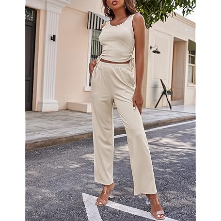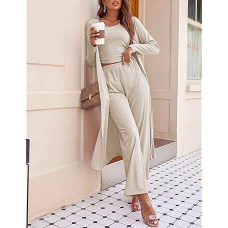 • Ekouaer Women's 3 Piece Lounge Set Pajama Long Sleeve Cardigan Sleeveless Top Pants Sweatsuit S-XXL