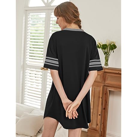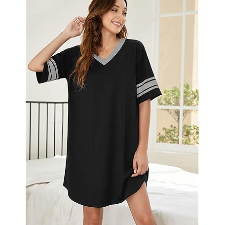 Sản phẩm Ekouaer Womens Nightgown Cotton Sleepwear Short Sleeve Sleep Shirt V Neck Color Block Nightshirt đang được bán với giá ưu đãi là $19.6636 tại nước Mỹ.