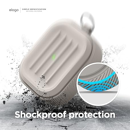 Thông tin sản phẩm elago Armor Case Compatible with AirPods 3 Case Cover - Karabiner Included, Supports Wireless Charging, Shock Resistant, Easily Cleaned, Full Protection (Stone)