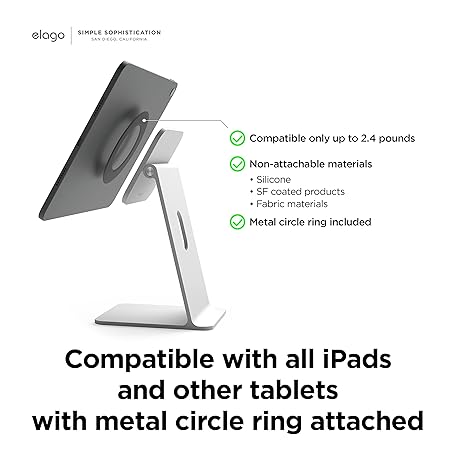 Sản phẩm elago Premium iPad Magnetic Stand Designed for iPad Pro 12.9"(5th, 4th Gen), 11"(3rd,2nd Gen), Air 10.9"(5th, 4th Gen), Mini 8.3"(6th Gen, A17 Pro), 10.9"(10th Gen) [Silver] đang được bán với giá ưu đãi là $108.9891 tại nước Mỹ.