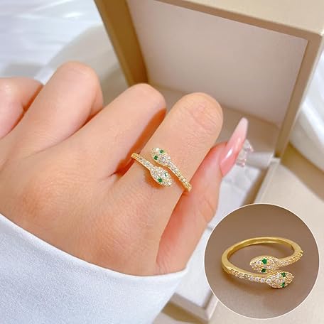 Sản phẩm Elarith couple two-headed snake zircon gold ring; Emeralds adjustable opening men's/women all-purpose jewelry đang được bán với giá ưu đãi là $10.8891 tại nước Mỹ.