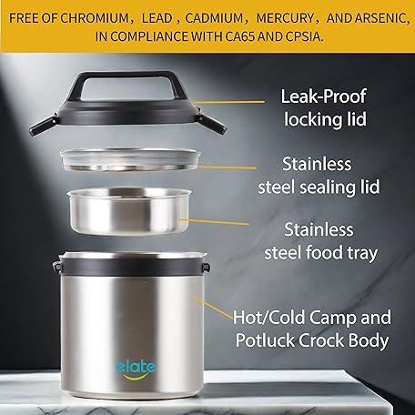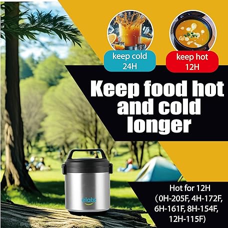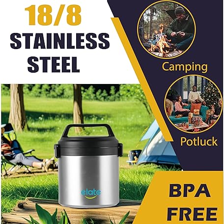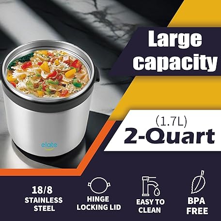 Elate 2-Quart Thermos Food Jar for Hot Food | 64oz Stainless Steel Vacuum-Insulated Camp Crock, Wide-Mouth Thermal Food Container, Portable Lunch Pot for Outdoor, Camping, Picnics, Trips, Potlucks
