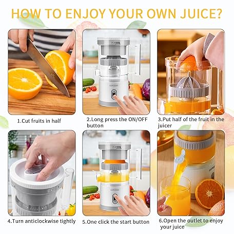 Thông tin sản phẩm Electric Citrus Juicer, Rechargeable Juicer Machine with USB Cable and Cleaning Brush, Touch Button, Automatic Orange Lime Lemon Grapefruit Squeezer, Easy to Clean Portable Juicer, White