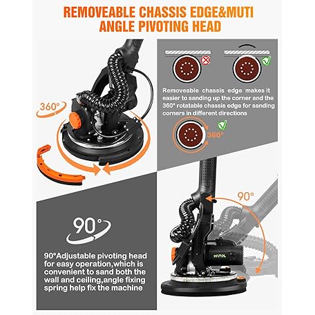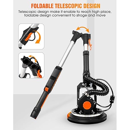 Thông tin sản phẩm Electric Drywall Sander with Vacuum Dust Collection, Variable Speed, LED Light, Foldable Handle, Sanding Discs & Grids