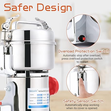 Thương hiệu BAOJIAFU là cái tên nổi tiếng được rất nhiều khách hàng trên thế giới chọn lựa. Với kiểu dáng đẹp mắt, sang trọng, sản phẩm Electric Grain Mill Grinder 800g High-speed Grain Spice Herb 1800W Dry Grinding Machine 304 Stainless Steel Superfine powder High-speed Grain Mill 36000r/min for Kitchen Home and Commercial là sự lựa chọn hoàn hảo nếu bạn đang tìm mua một món cho riêng mình.