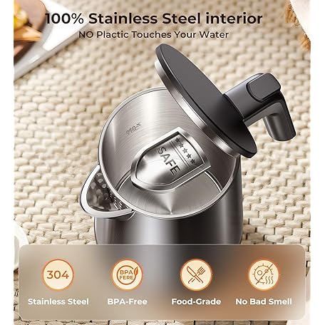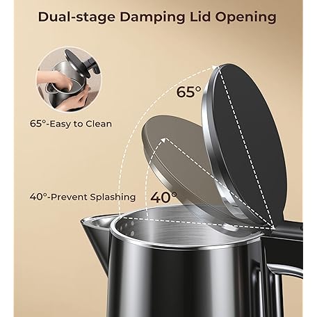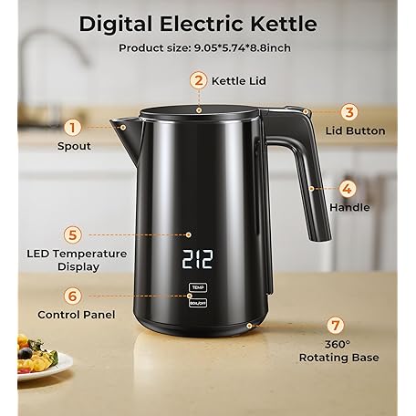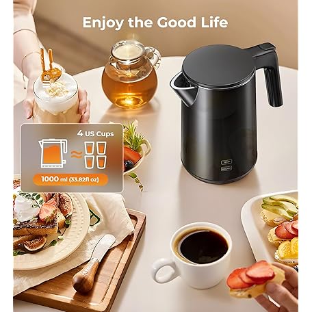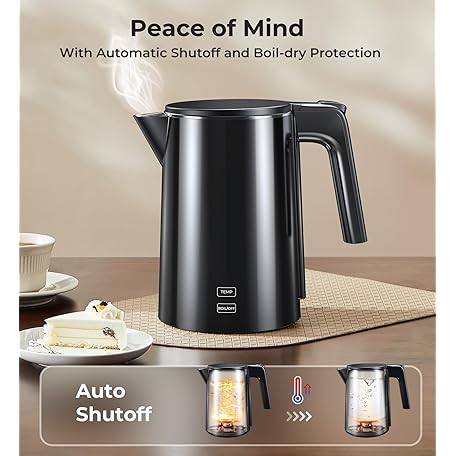 Thông tin sản phẩm Electric Kettle, 1.0L 1200W Fast Heat with Auto Shut-Off, Boil-Dry Proof, 7 Temperature Control Teapot, Double Wall Stainless Steel Water Boiler Heater, 4H Keep Warm, Cool Touch Coffee Tea Pot, Black