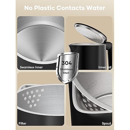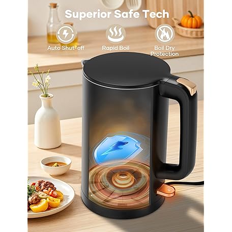 Thông tin sản phẩm Electric Kettle, 1.7L Double Wall Stainless Steel Cool Touch, Water Boiler & Heater, 1500W Hot Tea Pot, Auto Shut-Off & Boil Dry Protection, BPA-Free, Cordless Base & LED Indicator, Black
